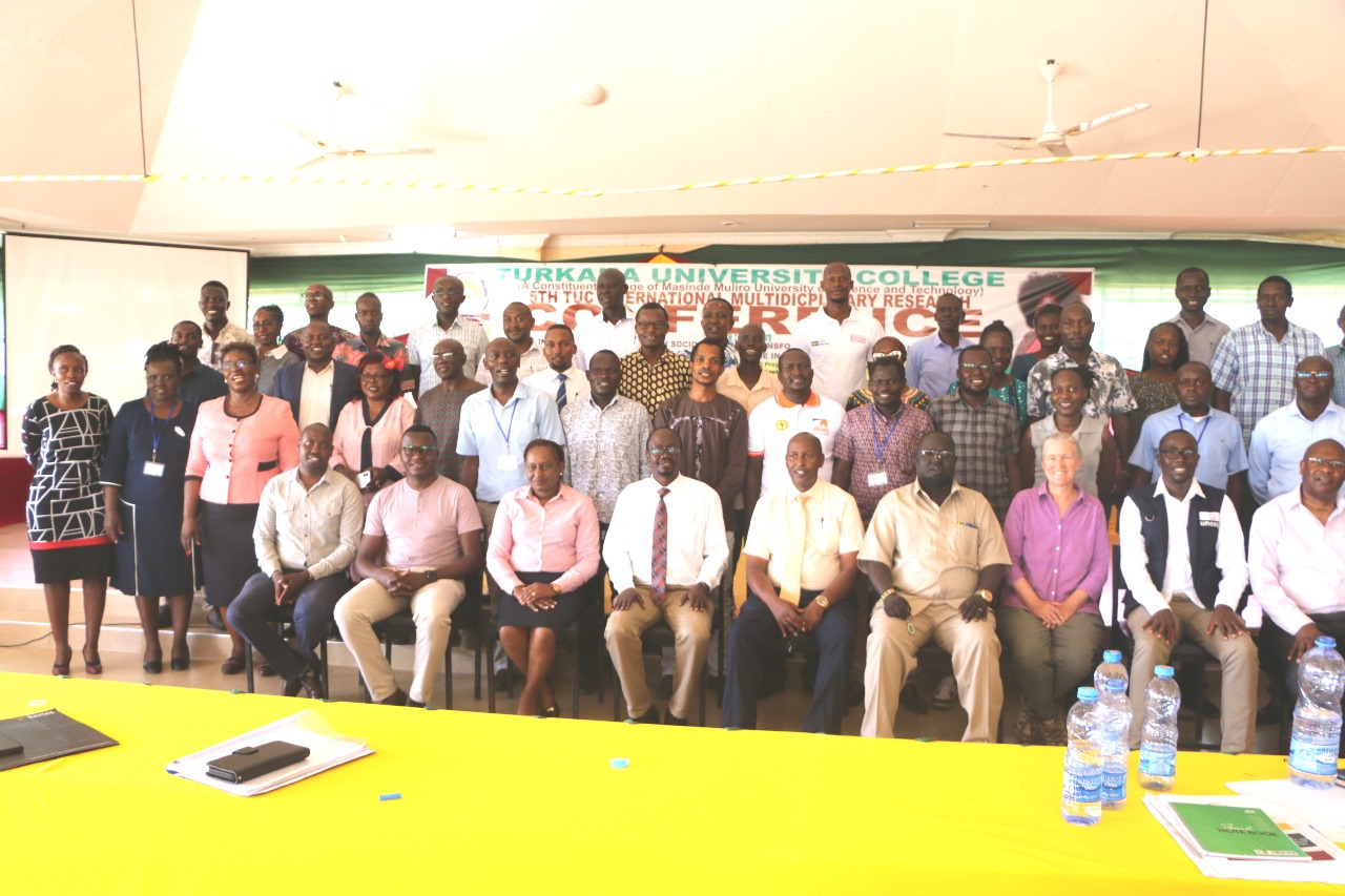 Turkana University College (TUC) successfully hosted the 5th International Multidisciplinary Research Conference from 11th to 13th June 2025 at the University College. The conference, themed “Innovative and Tech-Driven Socio-Economic Transformation: Sustainable and Locally Adaptable Solutions for Climate Resilience in Arid and Semi-Arid Lands (ASALs),” brought together a diverse group of researchers, academics, policymakers, development partners, and students from Kenya and beyond to deliberate on critical challenges and solutions facing ASAL communities. Turkana University College staff, speakers, presenters and other stakeholders pose for a photo in the university 's college main hall